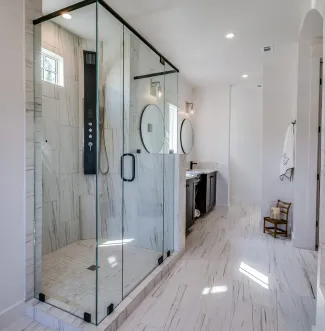 Apportez une touche d'élégance à votre salle de bain avec une douche italienne installée par Smart Technologies & Rénovation.